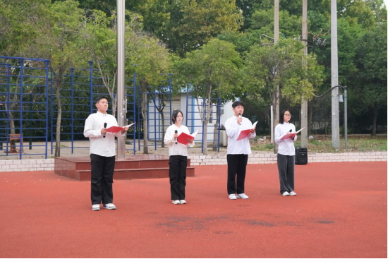 员工代表蔡钰轩、张博文、徐峰阳、程钰清朗诵《七十五载风雨兼程,九州大地共谱华章》,表达了对伟大祖国的无限热爱和崇敬,共同祝愿祖国更加繁荣昌盛,人民幸福安康。
