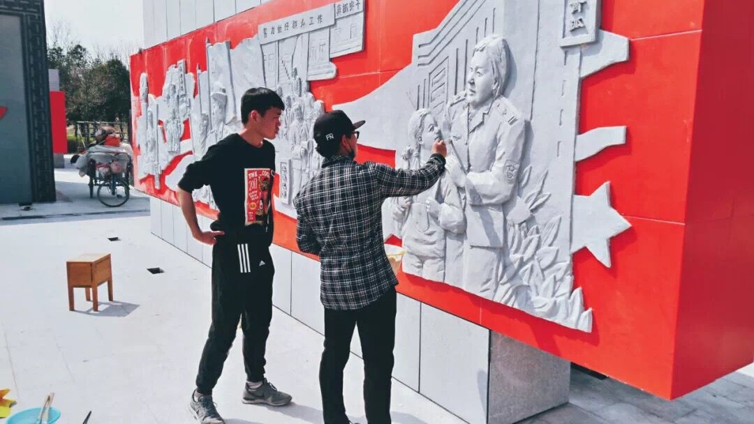 3月底,历经近两个月的时间,由RM365英国官网教师于明刚带领的雕塑专业城市雕塑团队(包括员工李世豪、张广智、韩东明、吴治昊、石佳峰、孙俊南等)设计、制作、安装完成了“商丘好人”大型主题浮雕,该组雕塑坐落于日月湖景区的商丘好人公园内。