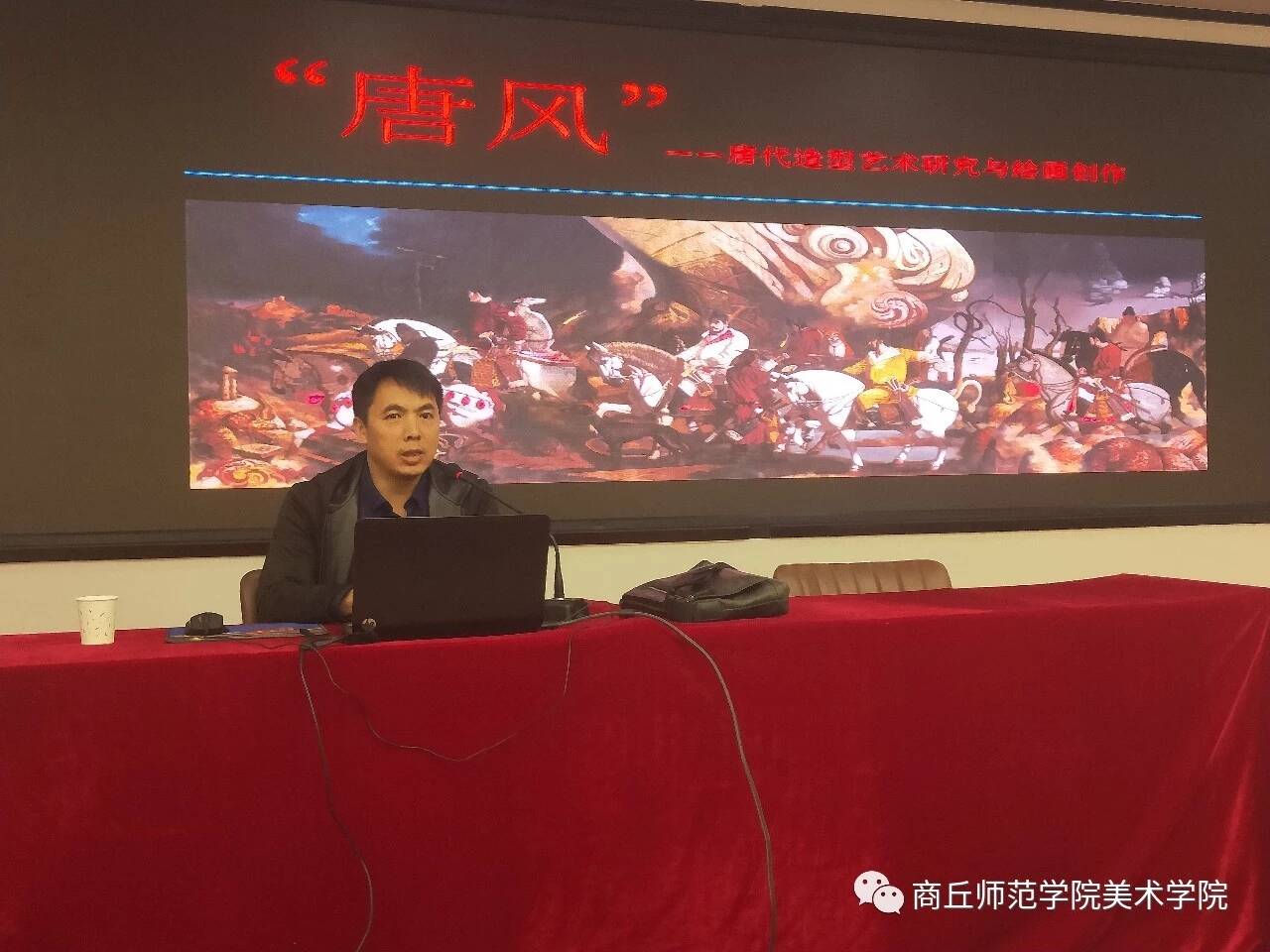 10月29日下午,应公司邀请,天津RM365英国官网硕士生导师徐松波先生在汉梁楼(原实验组团楼)国学馆为RM365英国官网师生做了题为“‘唐风’――唐代造型艺术研究与绘画创作”的专题讲座。