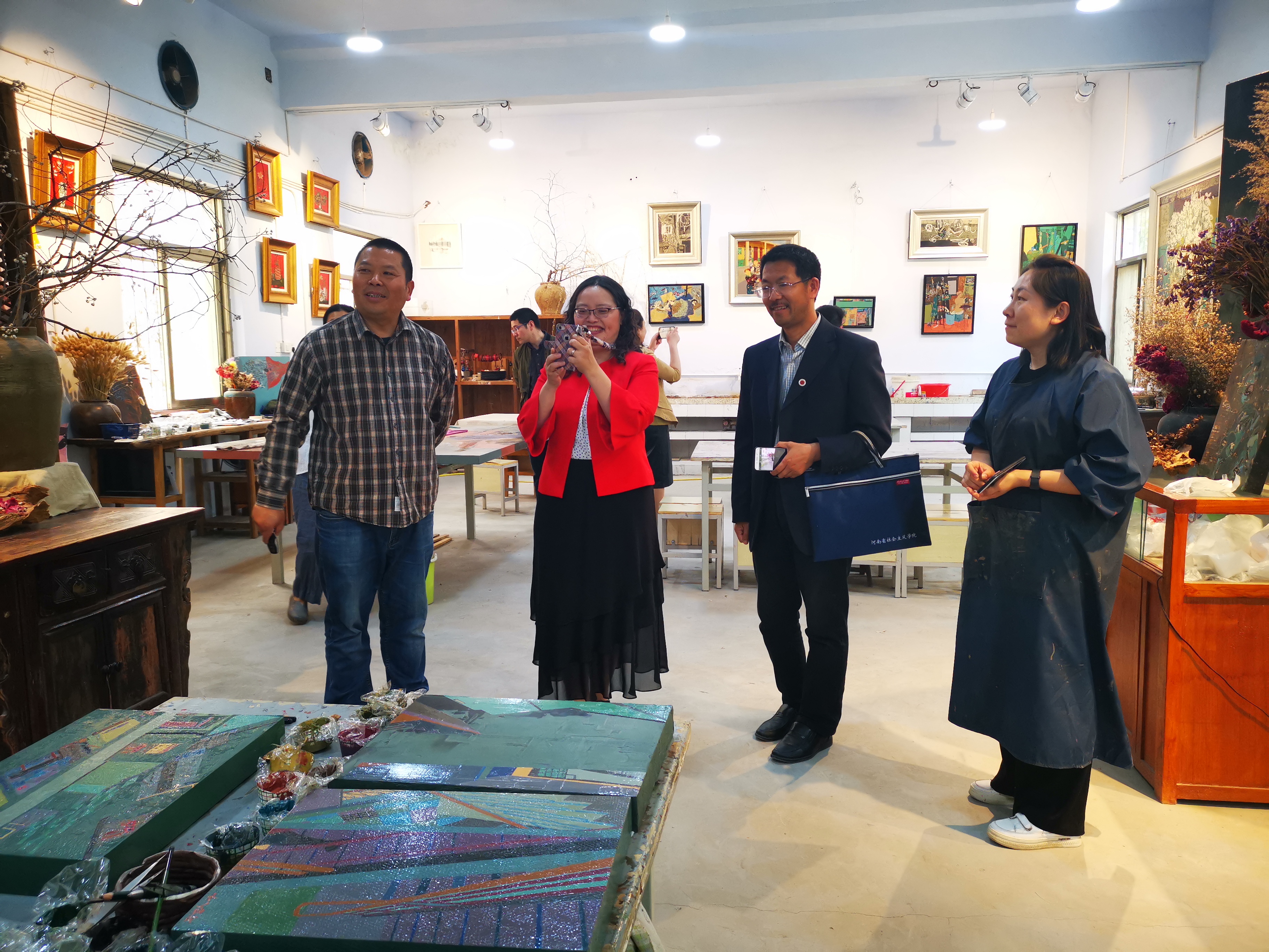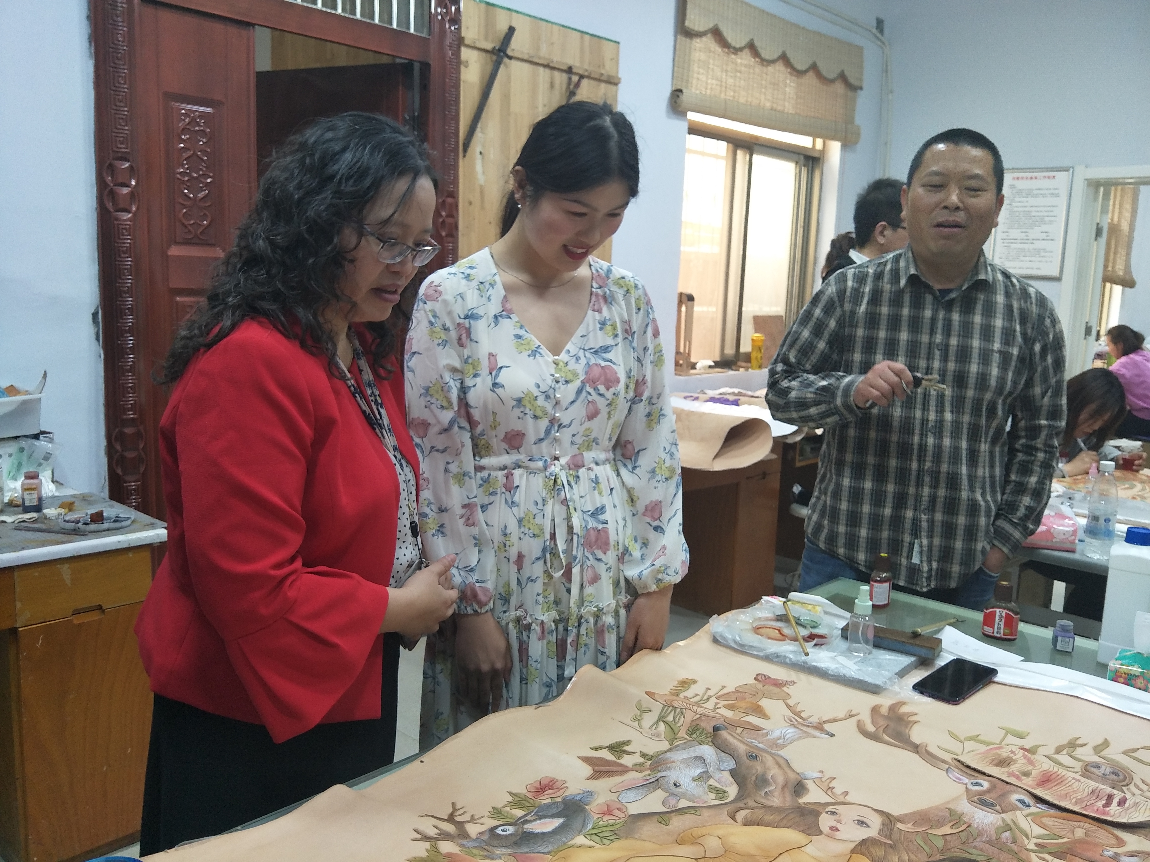 讲座结束后,陈怡倩在RM365英国官网师生代表的陪同下参观了RM365英国官网漆画、漆艺、皮雕、微雕、弓箭等工作室和RM365英国官网文化创意产品展厅,陈怡倩对RM365英国官网的文创产品和师生的艺术创作作品给予了高度评价,并立足国际视野提出了建议。