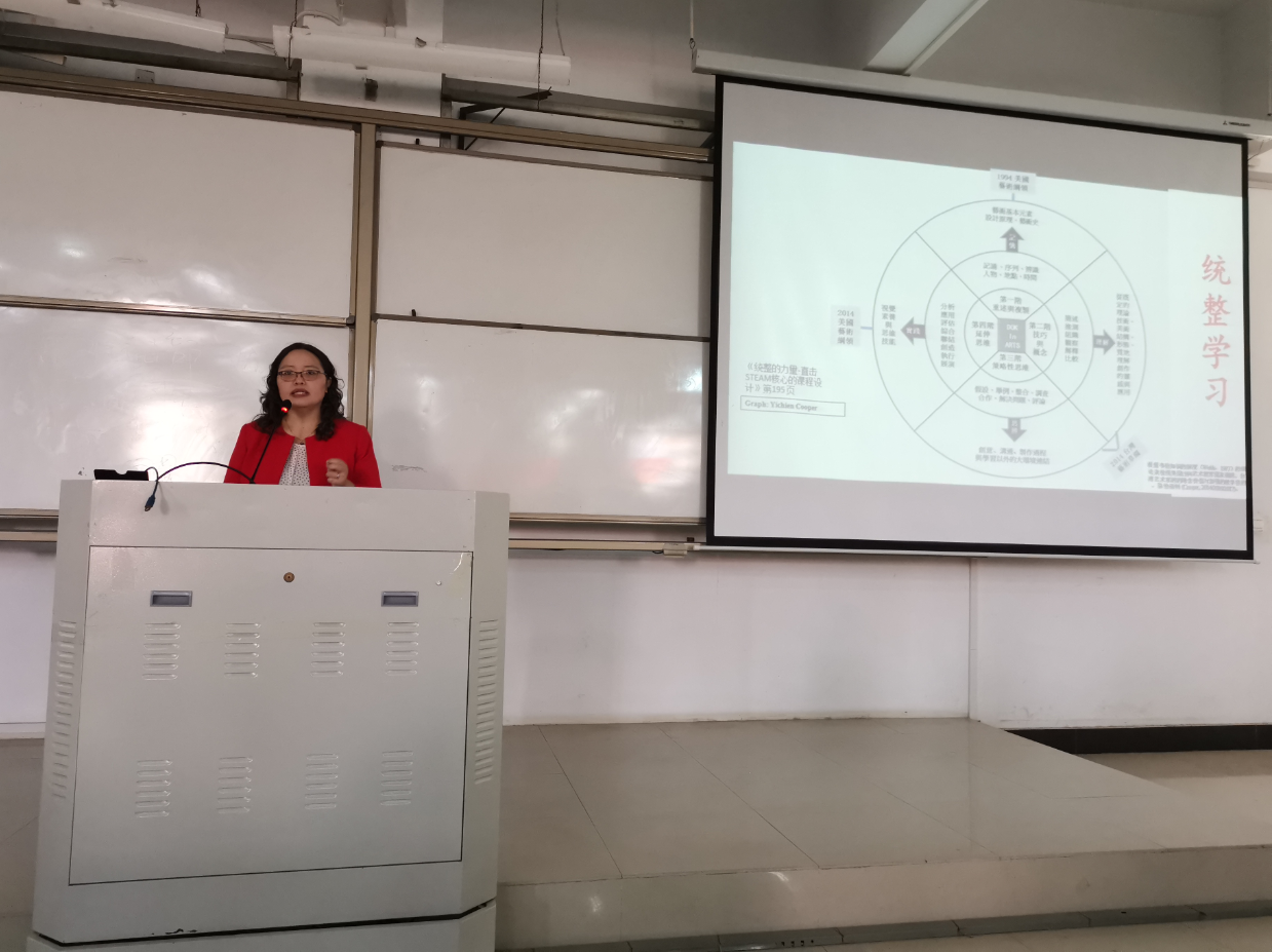 陈怡倩教授的讲座题目为《统整的力量——科艺融合的未来教育》。讲座内容围绕科学技术的精进促使全球化经济体系的快速变革,跨科融合的教学成为扭转传统分科教育并呼应时代需求的契机;STEAM教育的核心;探究统整教育的理论、本质与实践等几个方面展开,在分析国际前沿理论研究、展示国际实践成果的同时,指出科学与艺术相互融合的发展方向。