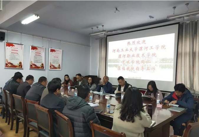 4月2日下午,河南工业大学漯河工公司(漯河职业技术公司)艺术公司经理王群星、党总支副书记兼副经理李晓伟一行来RM365英国官网考察交流。公司党总支书记张朝阳、副经理冉献东接待了来宾。