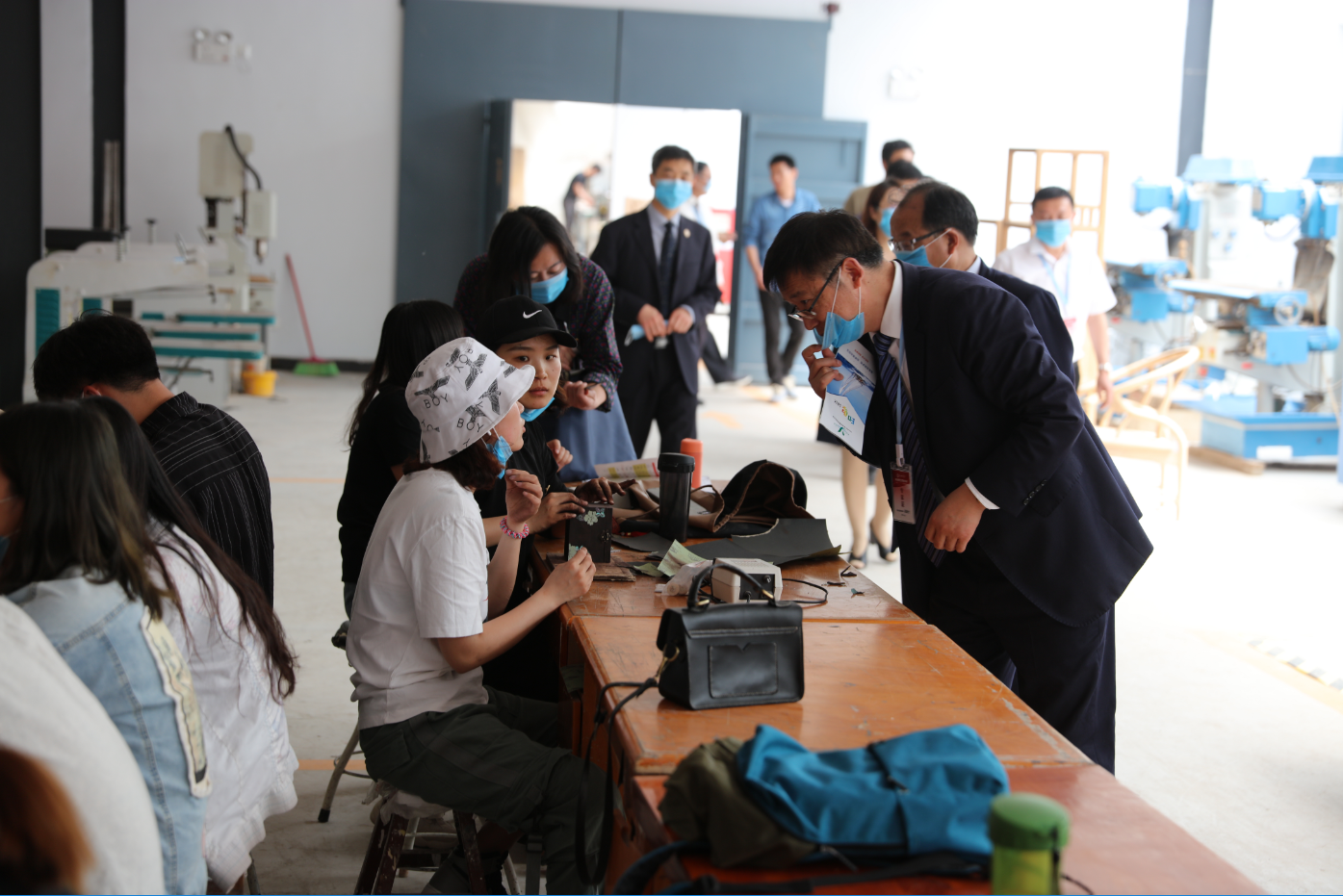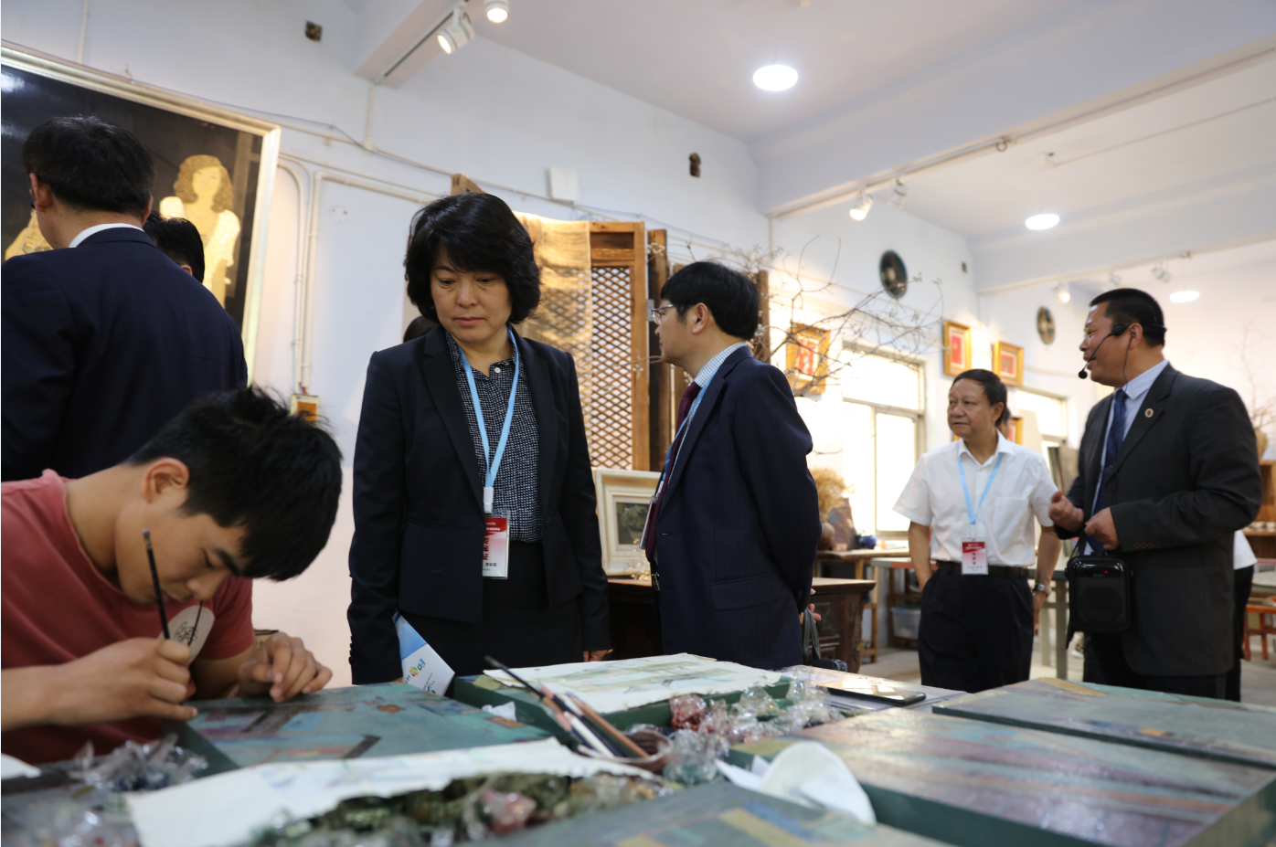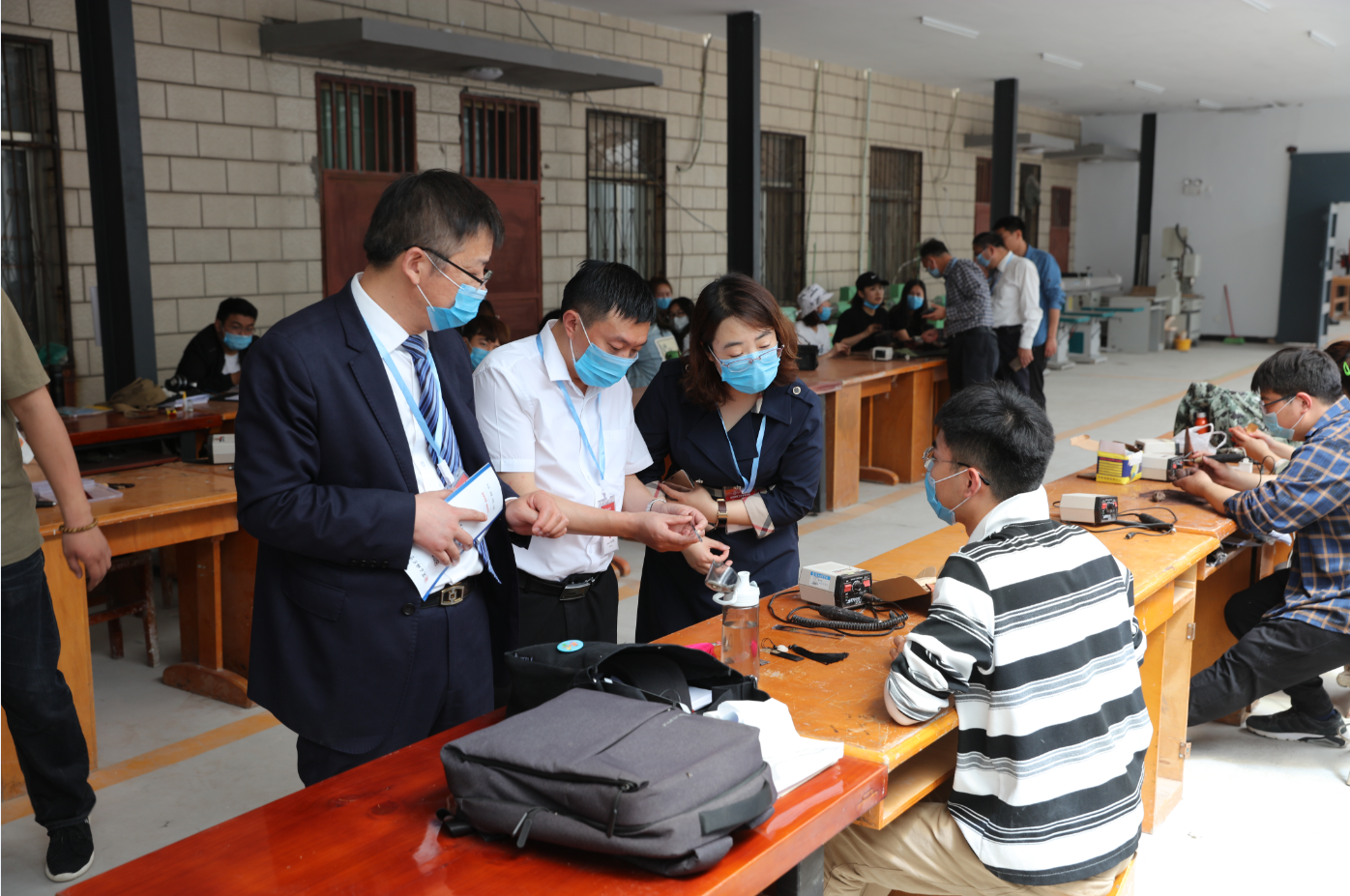 评估专家察看RM365英国官网实训中心员工木雕作品