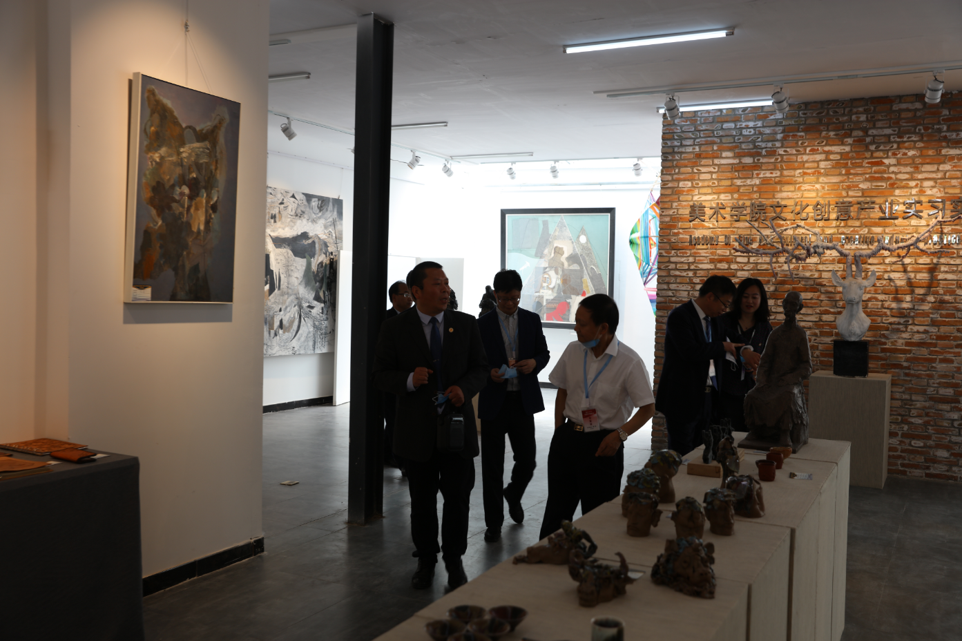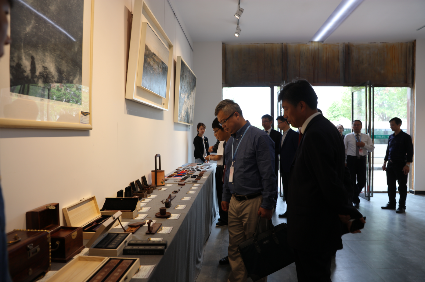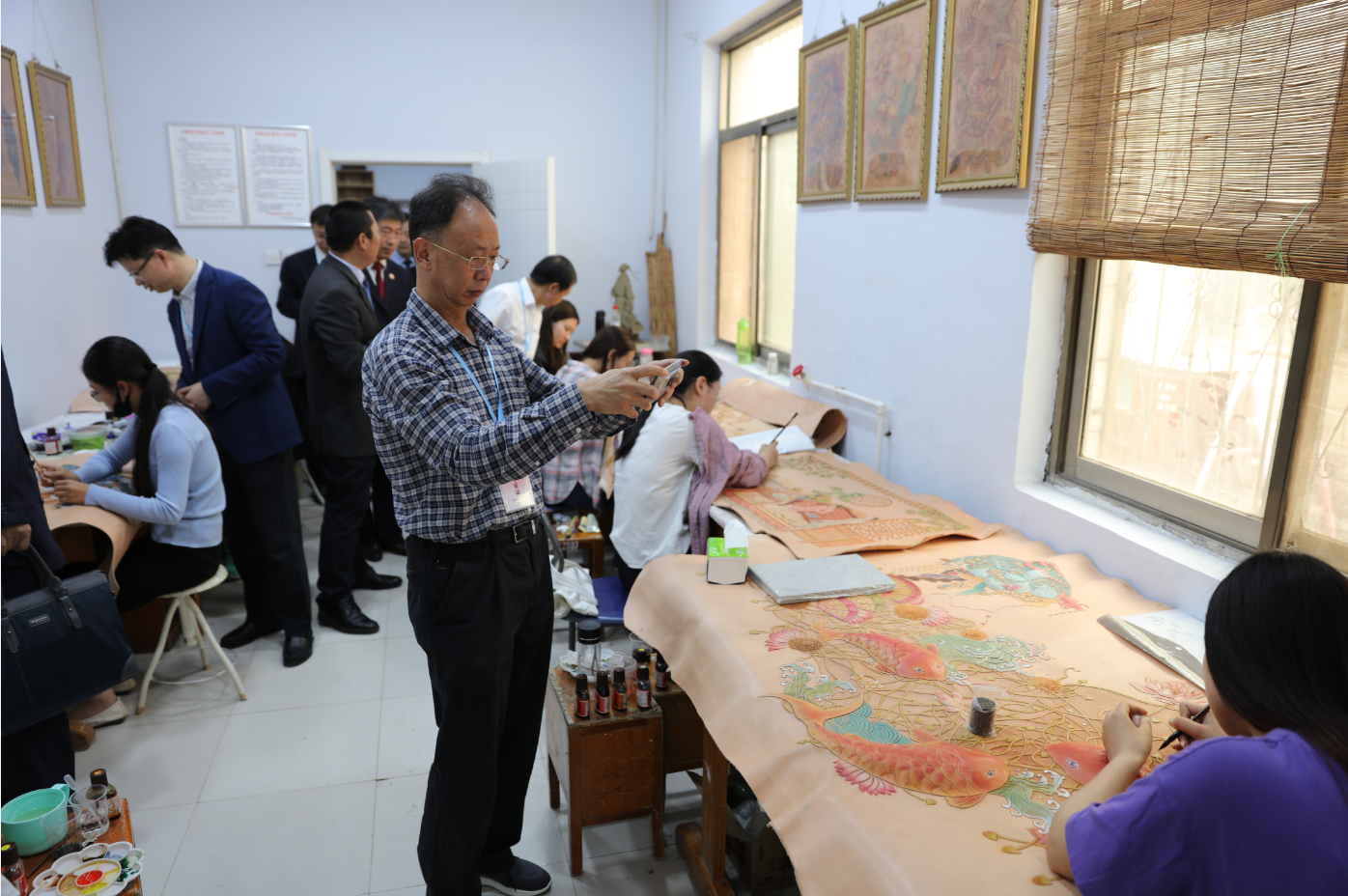 评估专家察看RM365英国官网实训中心员工木雕作品