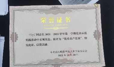 2021-2022学年党员示范活动中被评为“优秀共产党员”