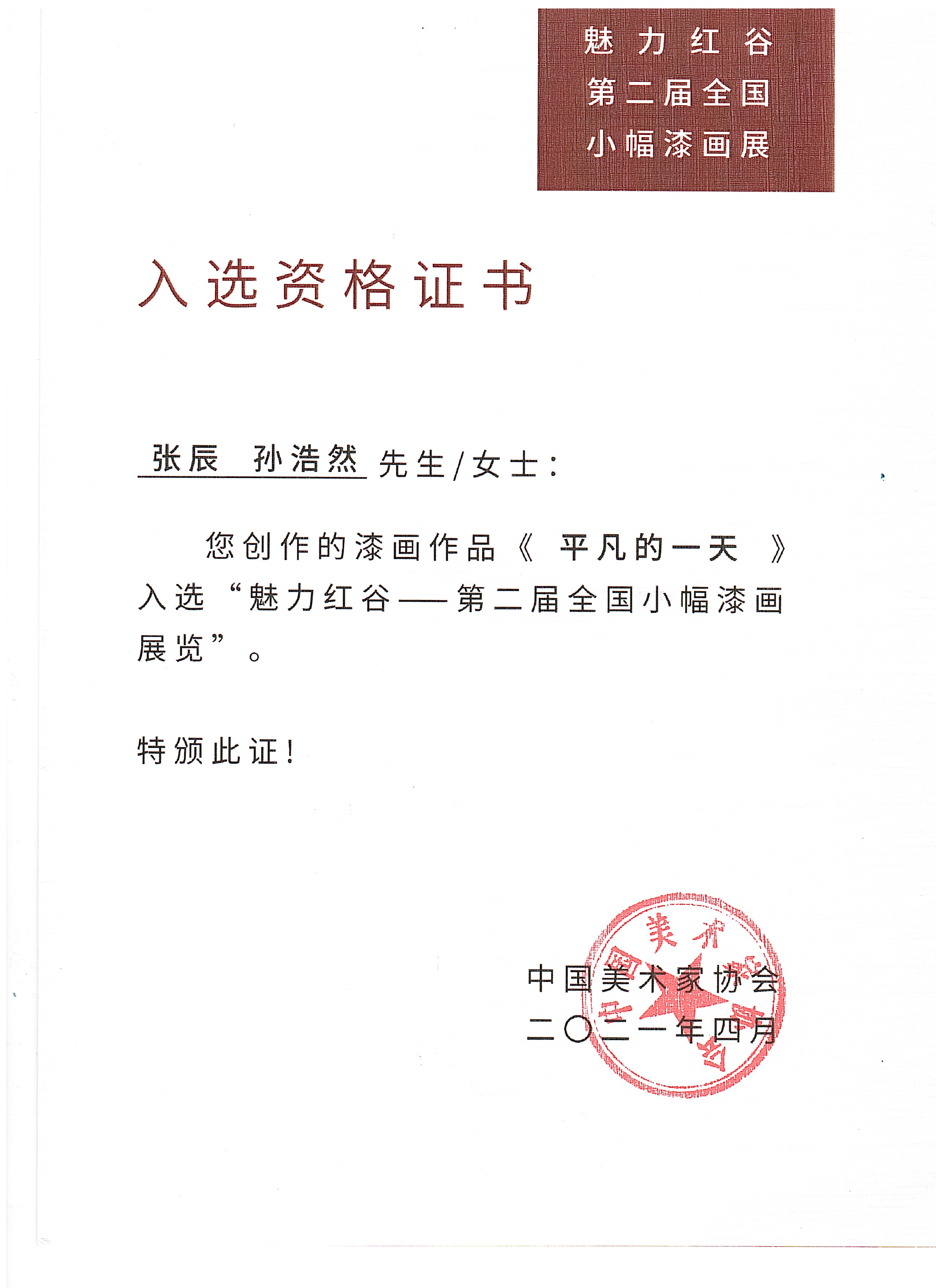 2022年 作品入选由中国美术家协会举办的2021中国(厦门)漆画展