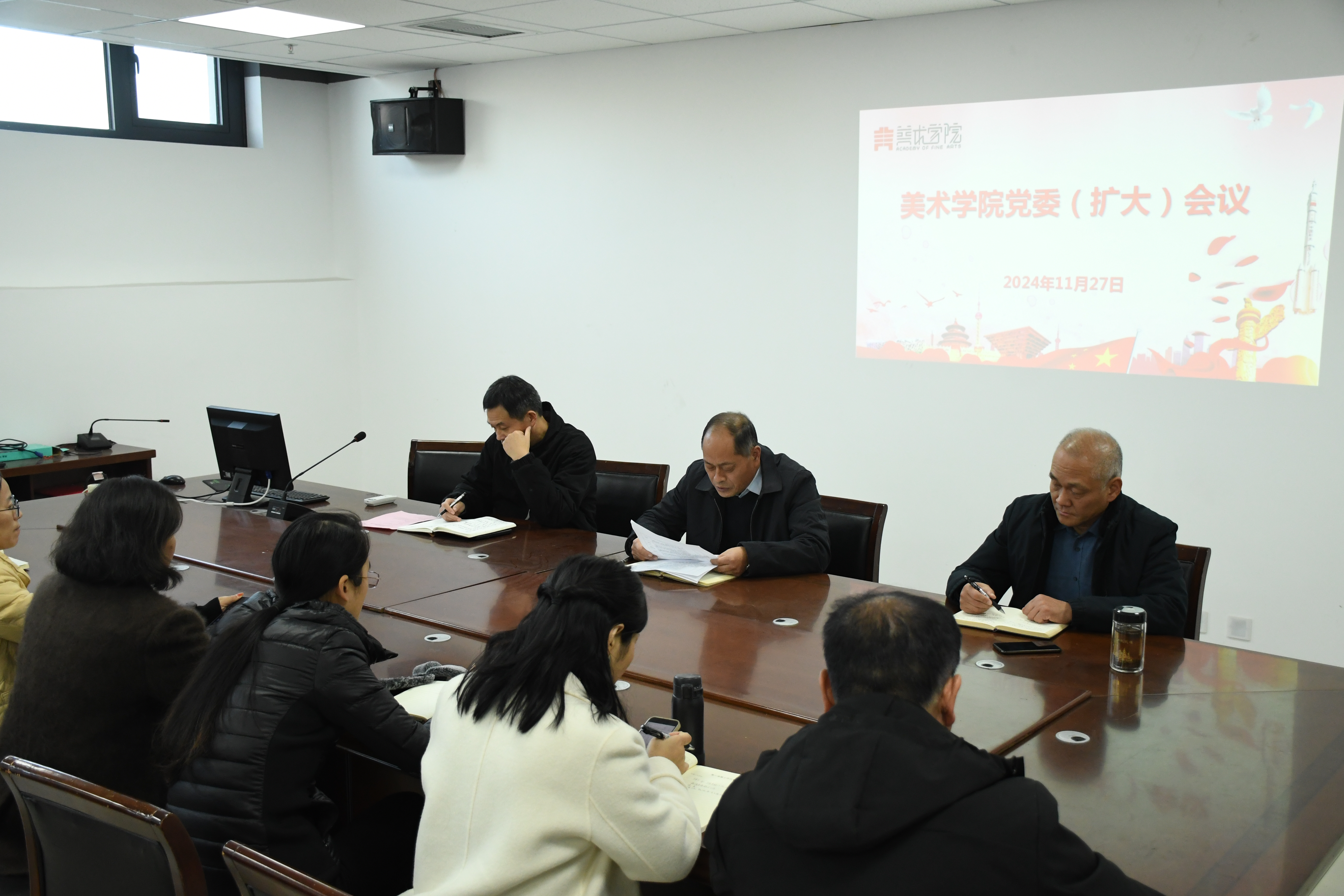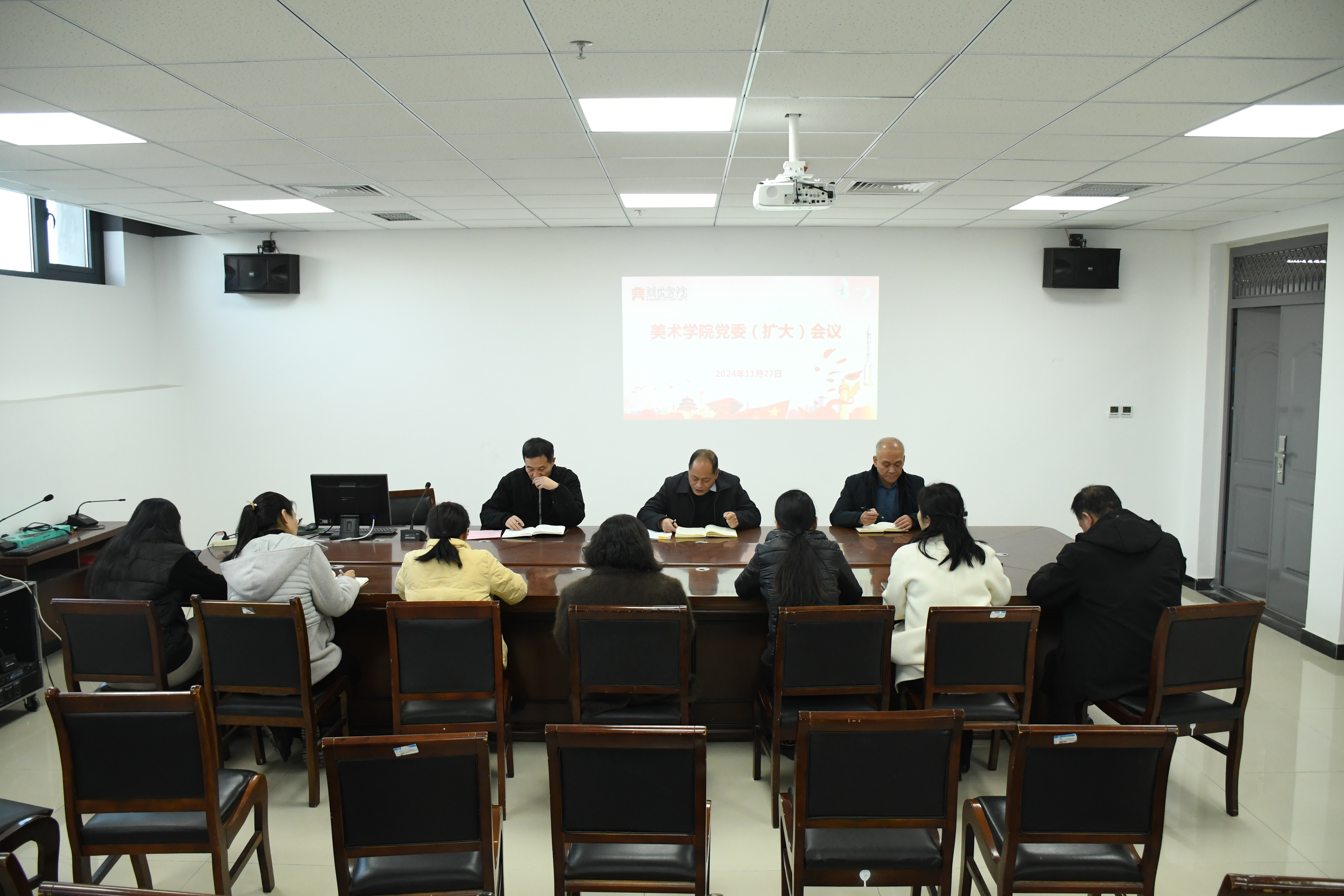 11月27日,RM365英国官网于艺术中心218会议室召开党委(扩大)会议,会议由党委书记史继红主持,党委副书记、经理李林,党委副书记付松山及相关系室负责人、辅导员参加本次会议。