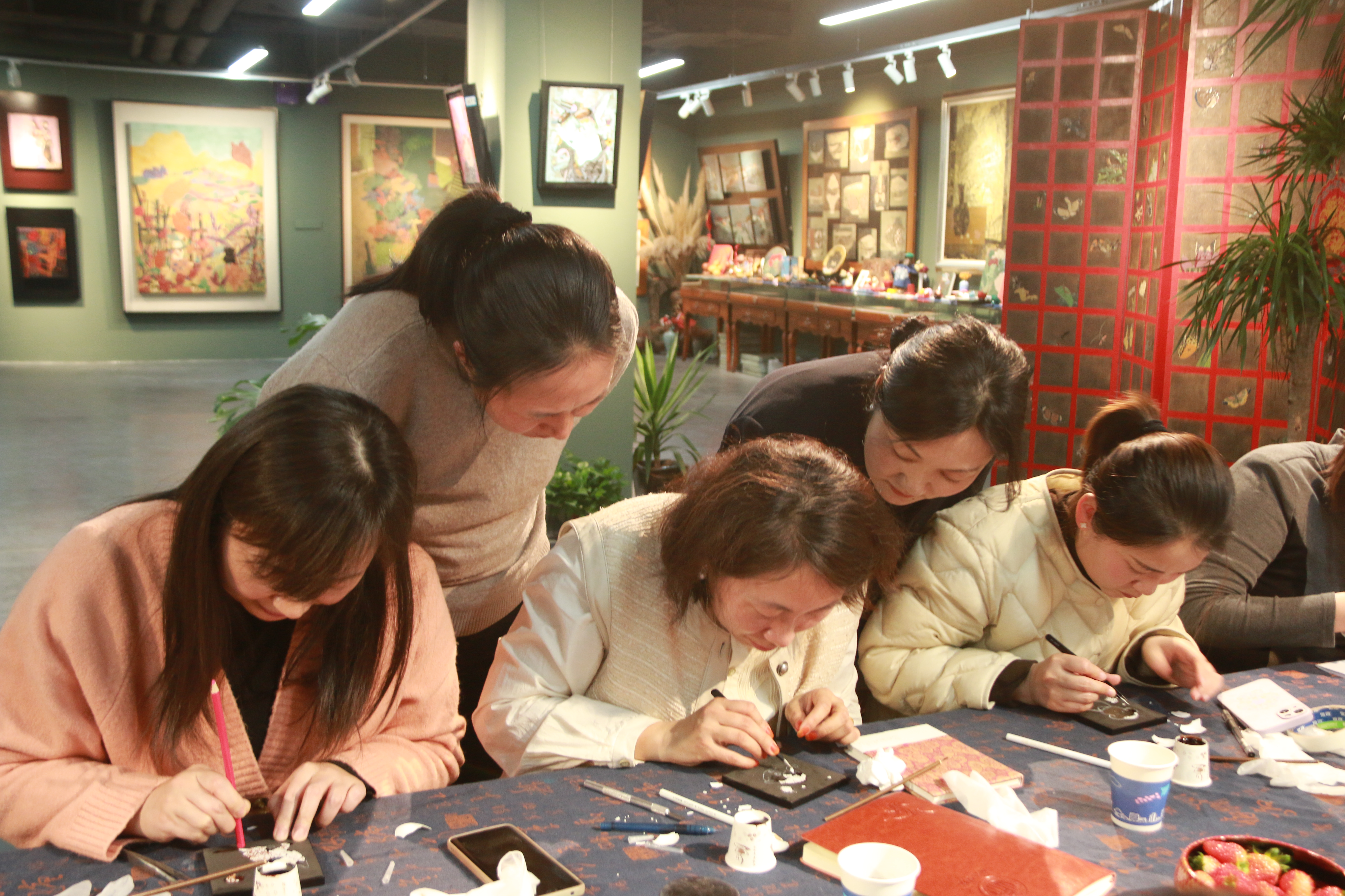 活动中还安排了互动环节,李娟教授现场进行示范,并热情指导与会教师亲自体验创作过程,现场气氛热烈,激发了大家对漆画艺术的浓厚兴趣与创作热情。与会教师纷纷表示,通过此次论坛,对当代女性艺术和漆画技法有了更深刻的理解与认知。