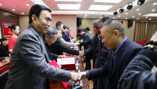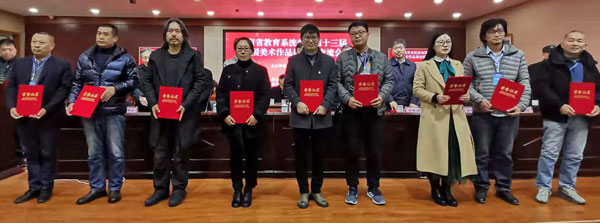 活动现场,有关领导宣读了河南省文学艺术界联合会、河南省教育厅关于对第十三届全国美术作品展河南教育界入选作者及有关高校进行表扬的通报。通报中指出,在五年一届的全国美展上,河南美术取得了骄人成绩,160件作品入选,位居中西部地区第一位,全国第九位。河南教育系统成绩尤为突出,92件作品入选全国美展,占全省入选数量的60%。