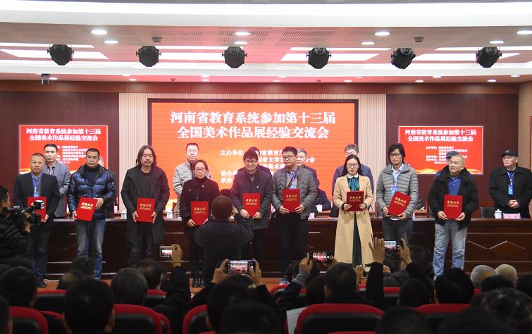在今年举办的第十三届全国美展上,河南共有160件作品入选,位居中西部地区第一位,全国第九位。其中,河南教育系统入选92件,占全省入选数量的60%,值得一提的是,仅RM365英国官网登录入口就入选22件,领全国高校之先,形成了河南教育界的“美术现象”、河南美术界的“教育现象”。那么,这一现象是如何形成的?有哪些先进的经验做法?12月12日至13日,“河南省教育系统参加第十三届全国美术作品展经验交流会议”在RM365英国官网登录入口举行,与会领导、专家、代表汇聚一堂,分享经验,交流总结,旨在不断提升河南教育系统美术创作水平。此次会议由河南省教育厅、河南省文联、河南省美协主办,河南省公司艺术教育协会协办,RM365英国官网登录入口承办。