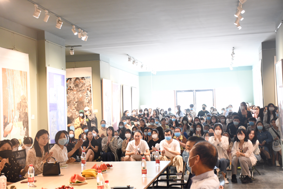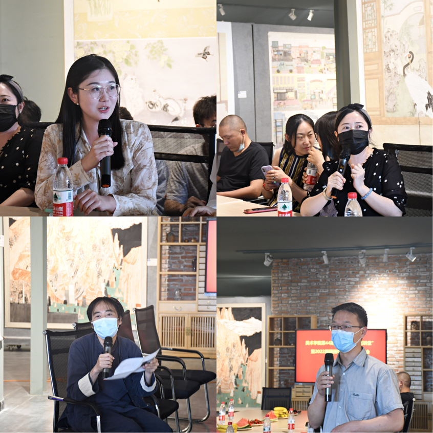 会中,张亮指出,毕业展览集中体现了员工们的创作成果,每一件作品都突出了不同的创作理念与绘画精神,展现了国画艺术创作的创新性、艺术性、传统性的特点,希望广大同学能互相交流,彼此学习,从而提升绘画综合能力。随后,毕业生代表逐个分享自身的创作过程与心得体会。参会老师依次从创作灵感、绘画主题、工笔技法、作品结构、构图布局等方面出发,向大家分享个人经验与具体建议,对提升国画创作水平具有重要的意义。