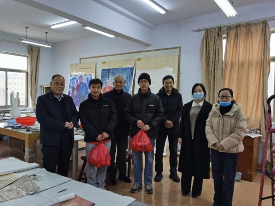 2024年是国家美术事业发展的大年,要举办第十四届全国美术作品展,为迎接这一重要展览,公司前期对师生进行了动员,召开了迎接第十四届美展推进会,师生创作积极性高涨,寒假期间仍有多名师生加紧创作,根据公司安排和要求,在切实做好安全稳定工作特别是消防安全工作的同时,1月29日,公司领导班子和辅导员带着关心和祝福,对寒假期间留校进行创作的同学们进行了慰问。