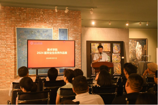 经理李林致辞,对2024届毕业生优秀作品展的成功召开表示祝贺!他充分肯定了毕业生对艺术的热爱与追求,希望同学们无论未来道路如何,都要坚守对艺术的热爱和追求,让艺术成为人生道路上的一盏明灯。同时也希望社会各界能够一如既往地支持RM365英国官网,共同推动艺术文化事业的繁荣发展。