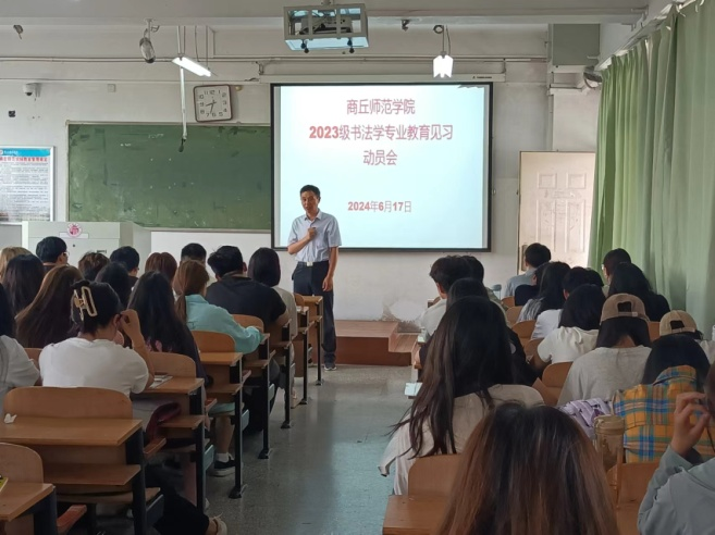 6月17日上午,在智园楼209教室召开了教育见习动员会。RM365英国官网经理李林、书法教师张雪峰、李一帆、曹文生和2023级书法学专业全体员工参加了动员会。李林强调了师范专业进行教育见习的重要意义,并对本次见习活动提出了具体要求。