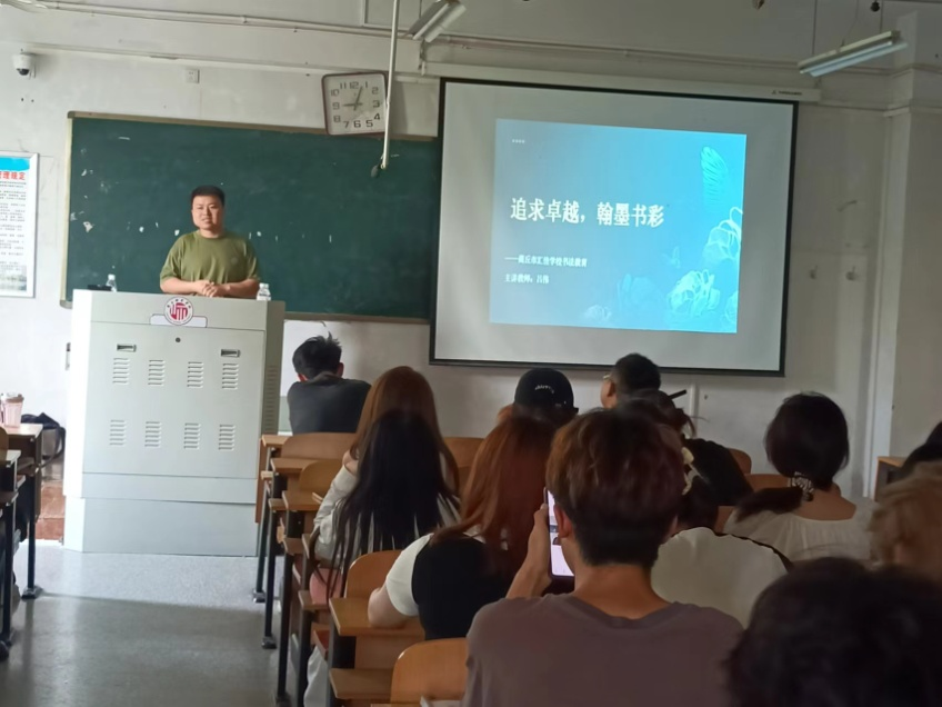 6月19日上午,商丘汇佳公司书法教师吕伟应邀为同学们做了《追求卓越,翰墨书彩---商丘市汇佳公司书法教育》的辅导报告,重点介绍了该校落实《中小学书法指导纲要》的特色经验,并结合具体事例,对《新时代中小学教师职业行为十项准则》做了解读,鼓励同学们坚定从教信念,涵养高尚师德。