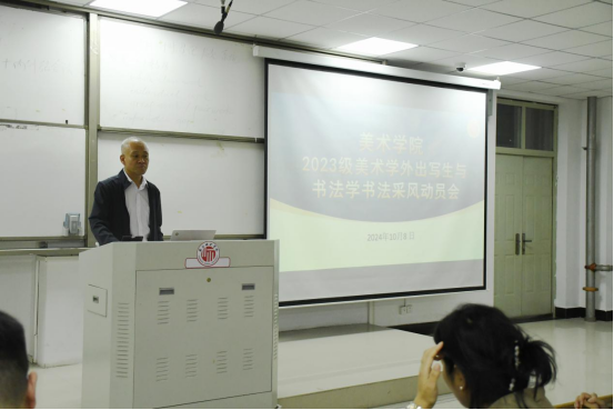 随后,美术学系带队老师程安营和书法采风带队老师王文博分别发言。他们强调了写生与采风在学习期间的重要性,同时对作业进行了安排,并再次强调纪律,要求同学们一定要按照老师的要求去做,服从领导,听从指挥。并对外出学习结束后的展览提前进行了安排部署。