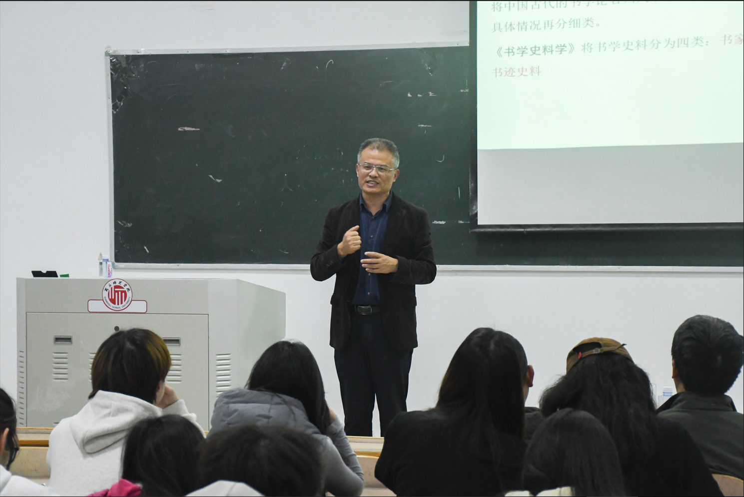 陈志平教授阐述了其编写《书学史料学》的目的,以王羲之、颜真卿、苏轼为例,讲述了书法内涵的历史演变。又以柳公权“心正则笔正”这一书史故事引入,为员工们剖析了“心正则笔正”的本来含义。同时与同学们进行了深刻交流,倾听了同学们的不同理解,耐心解答了同学们提出的问题。