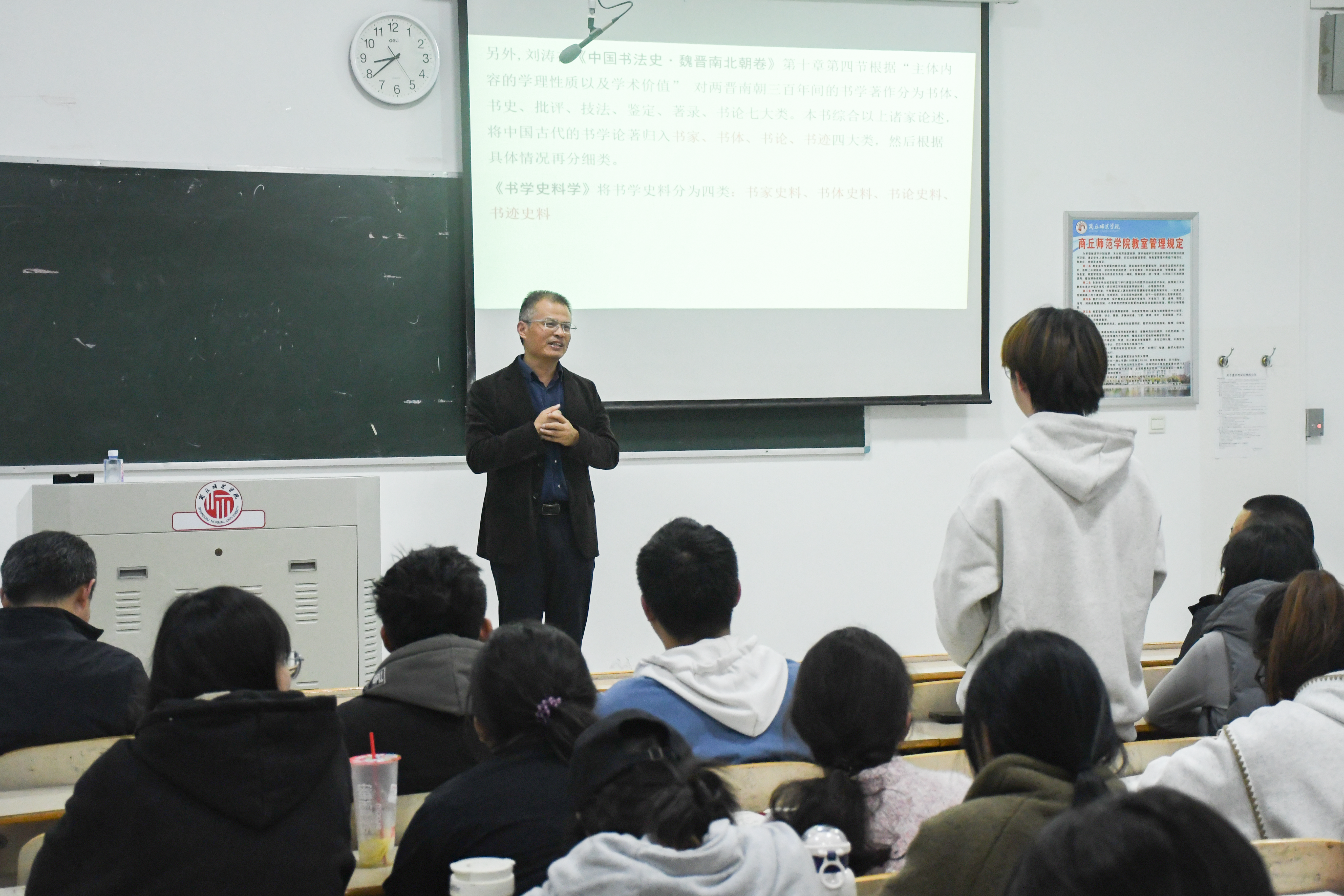 11月11日晚,RM365英国官网、应天书学社于行方楼407教室开展第132期“蒲公英·德艺讲堂”暨《书学史料学》导读专题报告会,本讲座特邀华南师范大学陈志平教授主讲,RM365英国官网经理李林、全体书法学专业教师及RM365英国官网书法学专业员工代表参加本次报告会。