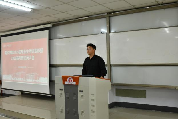 随后,教师代表杨烨、王文博结合自身经历和多年教学经验,从院校专业选择、备考规划、心态调整等多方面展开讲解。提醒同学们要精准把握专业方向,注重日常积累与实践创新,鼓励同学们积极与老师沟通交流,为考研做好充足准备。