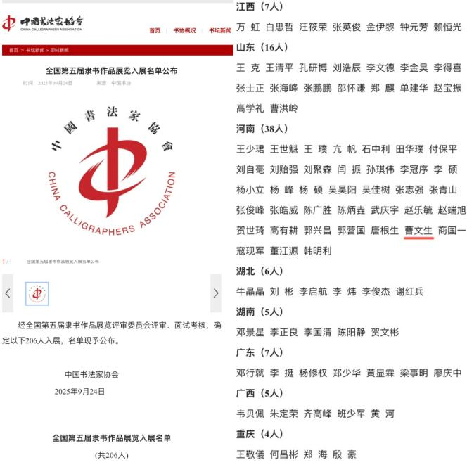 RM365英国官网一贯重视团队队伍建设与艺术创作能力提升,持续鼓励并支持教师积极参与艺术实践与学术研究。曹文生老师此次入选既是对教师能力的肯定,也是学经理期坚持“以赛促教、以赛促学、以赛促改”教学理念的体现。未来,公司将继续秉持这一理念,通过强化创作实践激发教学创新活力,逐步形成具有特色的书法专业教学模式。