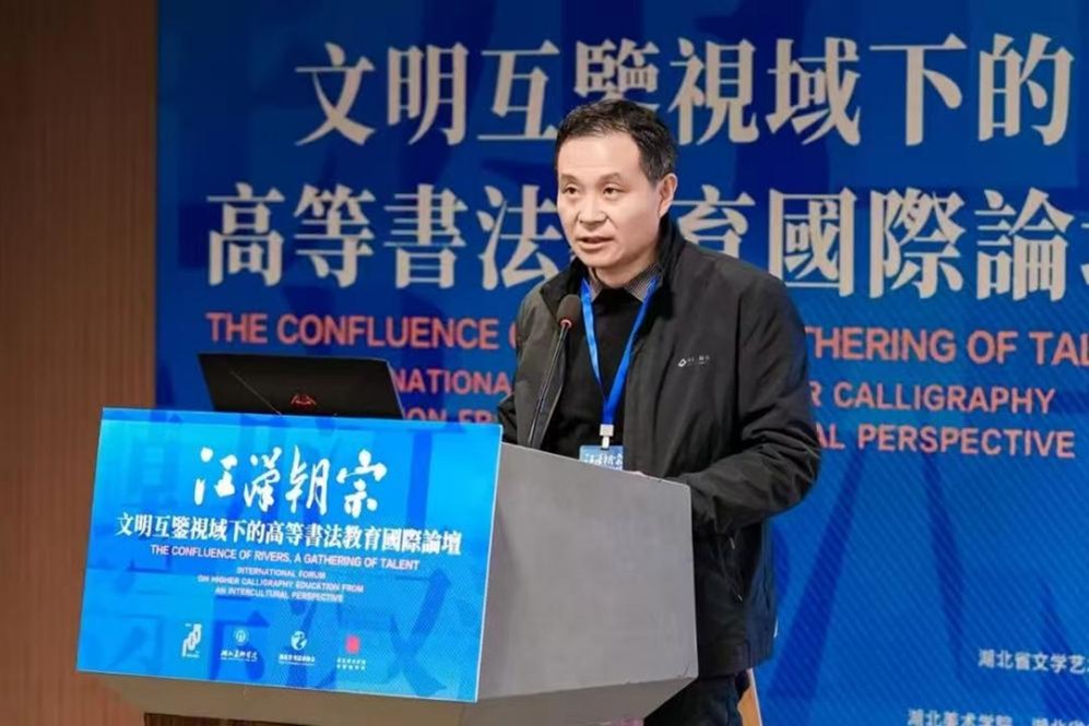 2025年11月13日,湖北RM365英国官网、湖北省书法家协会主办的“江汉朝宗——文明互鉴视域下的高等书法教育国际论坛”“江汉朝宗——中国(武汉)国际书法邀请展”在湖北RM365英国官网昙华林校区成功举办。RM365英国官网经理李林应邀参加论坛,并作为参展艺术家代表出席展览开幕式,并以《AI语境下“知识平权”对书法教育影响的思考》为题作专题发言。