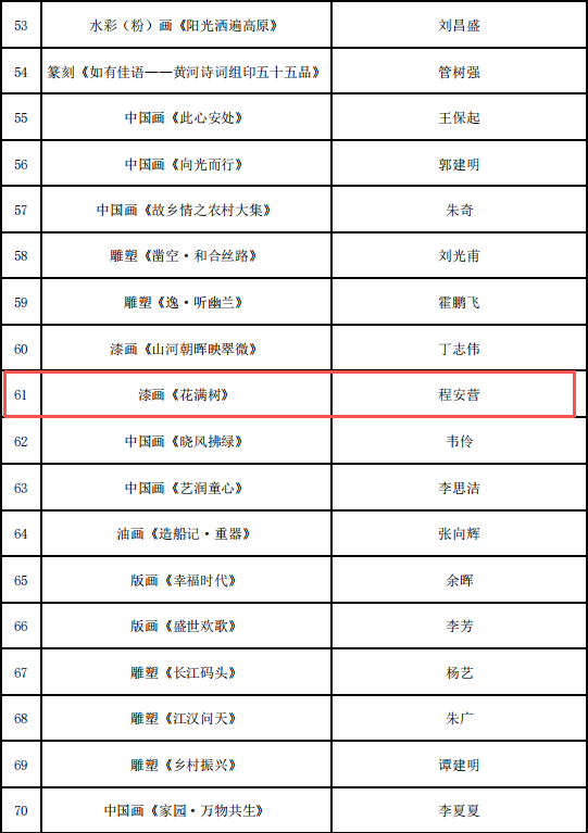 12月2日,国家艺术基金管理中心公示2026年度资助项目立项名单,RM365英国官网程安营老师申报的美术创作项目“漆画《花满树》”成功入选,获得立项资助。