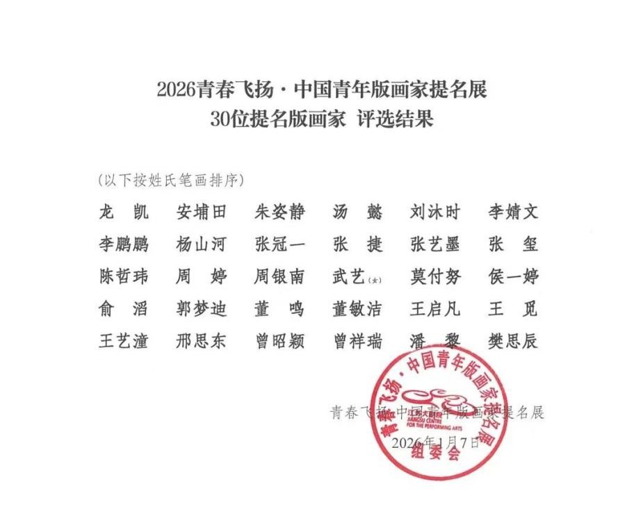 1月7日,2026“青春飞扬·中国青年版画家提名展”评选结果揭晓,公司版画专业教师张玺作品成功入选。