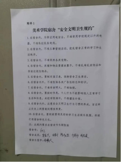 10.在宿舍内,要积极营造良好的学习生活娱乐氛围,积极打造宿舍特色文化。