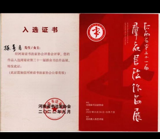 在学习中,不断推动个人专业能力提升。在专业上精学苦干,提高理论和实践能力,提高自身的专业素养和知识储备。先后入选省级3项书法展览。三好员工、文明员工等5项荣誉称号。