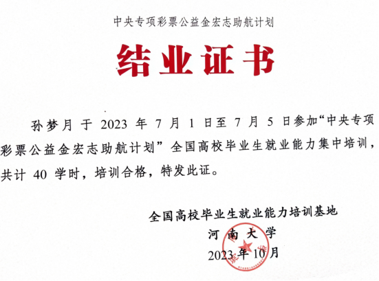孙梦月荣誉证书展示: