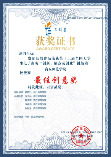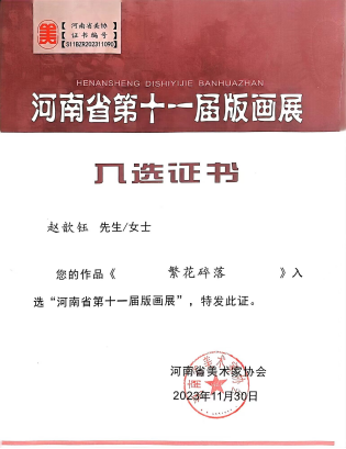 宝剑锋从磨砺出,梅花香自苦寒来。为了能够更好的精进自己的理论知识和专业技能,她积极参加美术类相关比赛,作品《深深旧梦中》入选第六届全国漆画展展览、作品《繁花碎落》入选河南省第十一届版画展展览、主持参与第十三届全国老员工电子商务“创新、创意及创业”挑战赛荣获省级三等奖、荣获2023年河南省普通高等公司“三好员工”称号。在团队合作和组织能力方面,她积极组织班级工作,带领团队在老员工创新创业大赛中一路披荆斩棘,展现了领导力和协作精神。