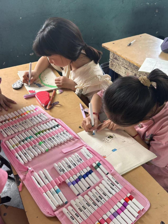 志愿者们积极的和孩子们互动,带队老师魏冉表示:“艺术是表达情感和交流思想的重要方式,每个孩子都应该有机会接触和学习艺术。通过这次支教活动,我们希望能够为员工打开一扇窗,让他们能够通过艺术表达自己,同时为他们的未来教育和职业生涯铺路。”