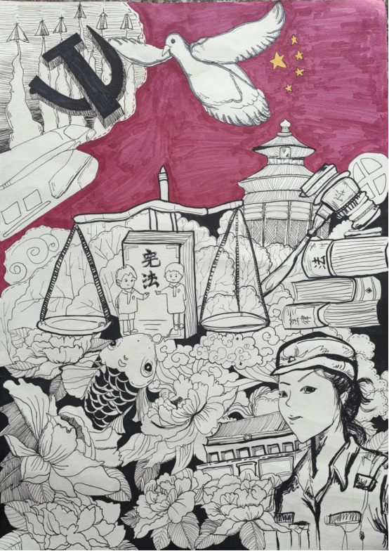 本次作品征集活动以“以美育人‘画’说法治”为题,RM365英国官网学子们积极投入创作,同学们紧扣主题,认真创作,作品形式丰富多彩,涵盖绘画、剪纸、书法等。在创作过程中,同学们不仅丰富了法律知识,也深刻认识到学法、知法、守法、用法的重要性,真正让法律走进青年员工的心中,实现青年成长与法同行。以下是“以美育人‘画’说法治”主题征集活动的部分优秀作品: