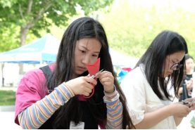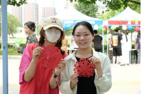 本次公司展位活动的主题为“剪纸‘心’创作”趣味剪纸活动,同学们热情高涨,积极参与,公司活动展位人员满满,现场充满了欢声笑语。参与活动的同学使用工具和材料,现场创作出各式各样的剪纸作品,在释放压力,放松心情的同时,通过动手剪纸创作的形式使同学们感受传统文化魅力,体会艺术之美。随后,校领导光临公司展位,欣赏并肯定了同学们的剪纸作品。