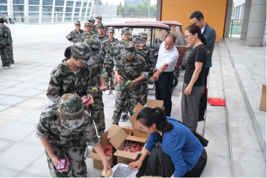 活动中,慰问小组一行与教官和新生们进行了亲切交流,了解了新生们军训期间的适应状况,深切关怀了教官与新生军训的辛苦,为他们带去了月饼、水果等物资,在这个特殊的日子里,公司送出的不仅仅是月饼和水果,更是对新生满满的关怀和期望。
