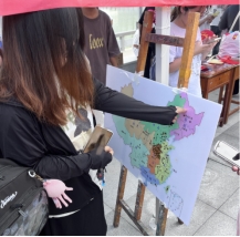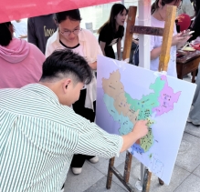 领取贴纸贴在中国地图上的活动别具一格。大家将充满爱国情怀的贴纸贴在地图上,每一个贴纸都代表着同学们对祖国大地的热爱与深情。