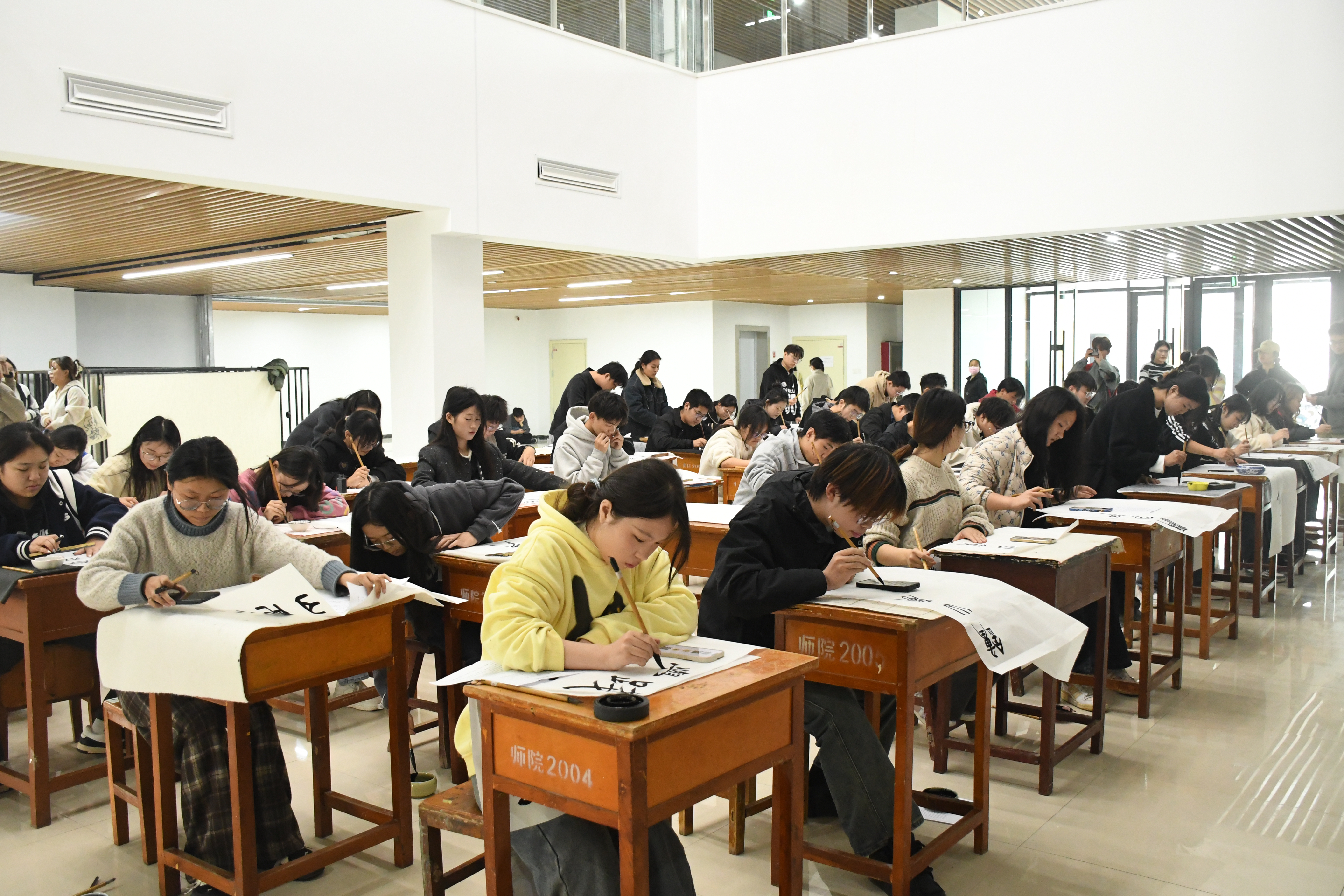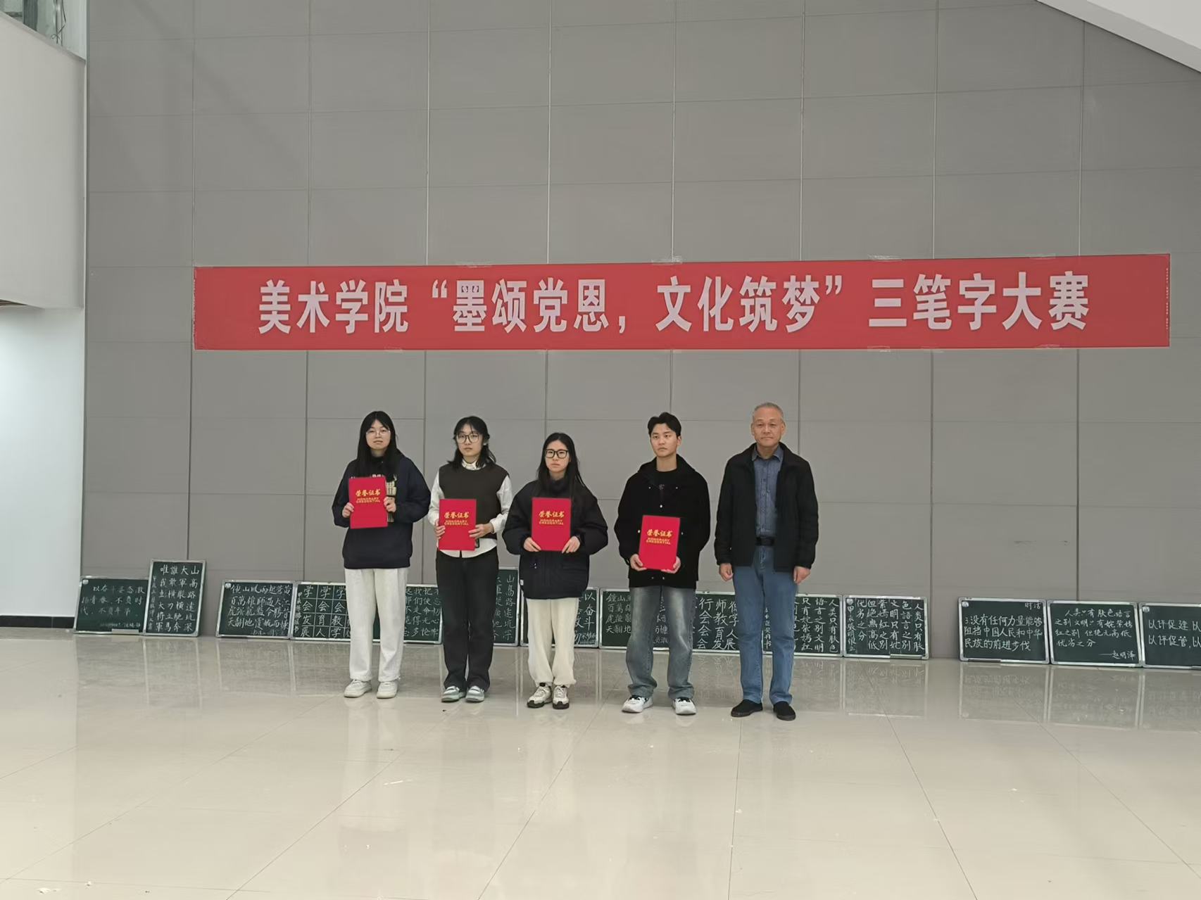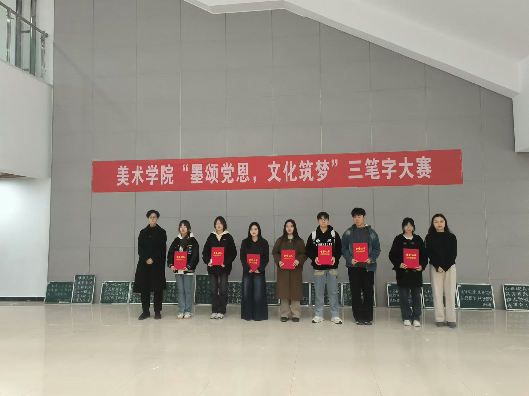 为庆祝新中国成立75周年,通过书法这一传统艺术形式,表达对党和祖国的热爱与祝福。11月8日,RM365英国官网于艺术中心一楼大厅举办“墨颂党恩,文化筑梦”三笔字大赛,公司党委副书记付松山、美术学系主任杨烨及各年级辅导员参加了本次比赛。
