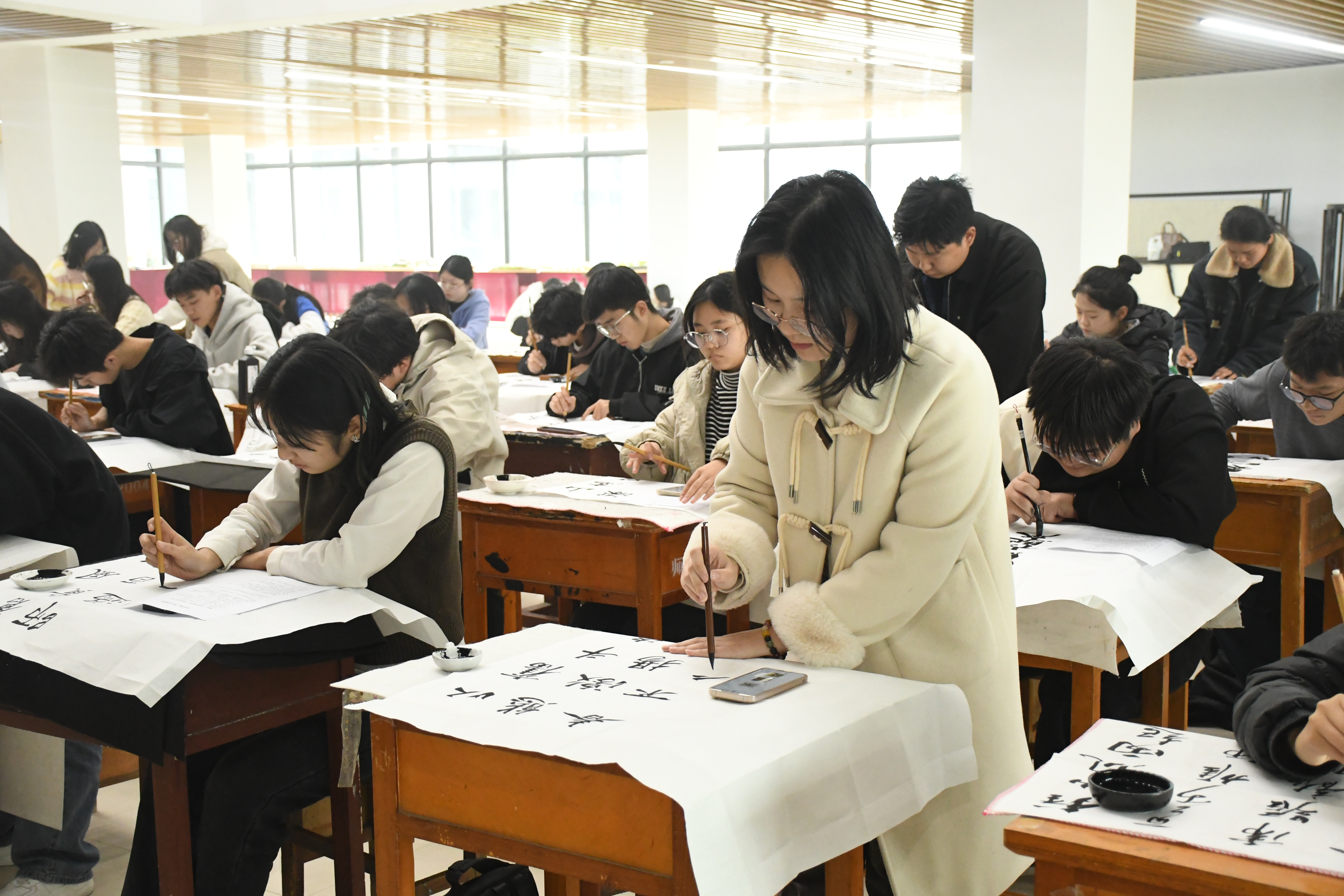 评委老师从字体结构、笔画规范、书写技巧、整体布局以及作品所传达的情感等多个方面对参赛作品进行细致评审,最终分别在专业组和非专业组中评选出一、二、三等奖。