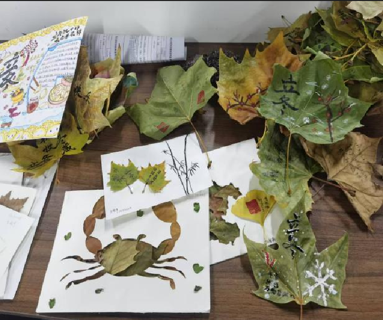 组织部在立冬时节开展了以立冬为主题的书画创作活动。活动形式为在树叶上进行装饰、绘画或书法创作。在此活动中,同学们能拓宽知识面,锻炼文字表达等能力,感受冬至氛围,增强对传统文化情感的表达,提升审美与艺术素养。