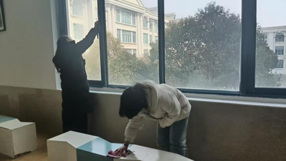 活动开始,青协负责人对参与人员进行了简短的动员讲话,强调了保持校园环境整洁的重要性,并对打扫区域进行了详细分工。随后,大家按照分配的任务,迅速投入到清扫工作中。在教室走廊、团团书吧,志愿者们认真清扫地面,擦拭墙壁和窗户,整理书籍、清洁桌椅和地面。