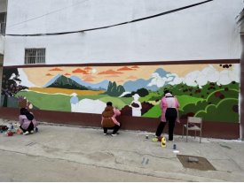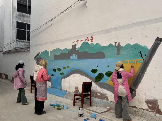 本次墙绘以农耕文明自然风光为主题。墙绘现场,同学们手持画笔,在乡村建筑的墙壁上精心创作,绘制出一幅幅色彩鲜艳、生动形象的墙绘作品。原本单调的墙壁,如今变成了展示乡村魅力的艺术长廊,不仅美化了乡村环境,还成为传播了新时代乡村的文明新风尚。