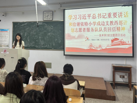 活动中,各团支部负责人带领同学们认真研读习近平总书记的重要讲话和回信内容。随后,各团支部通过观看西部计划志愿者服务队工作的纪录片、小组讨论等多种形式,让同学们更加深刻地感受到志愿者们扎根西部、无私奉献的精神。通过活动,大家纷纷表示将以习近平总书记重要讲话和回信精神为指引,把个人成长与国家发展紧密相连,在新时代新征程中,以实际行动为中国式现代化建设贡献自己的青春、智慧和力量。