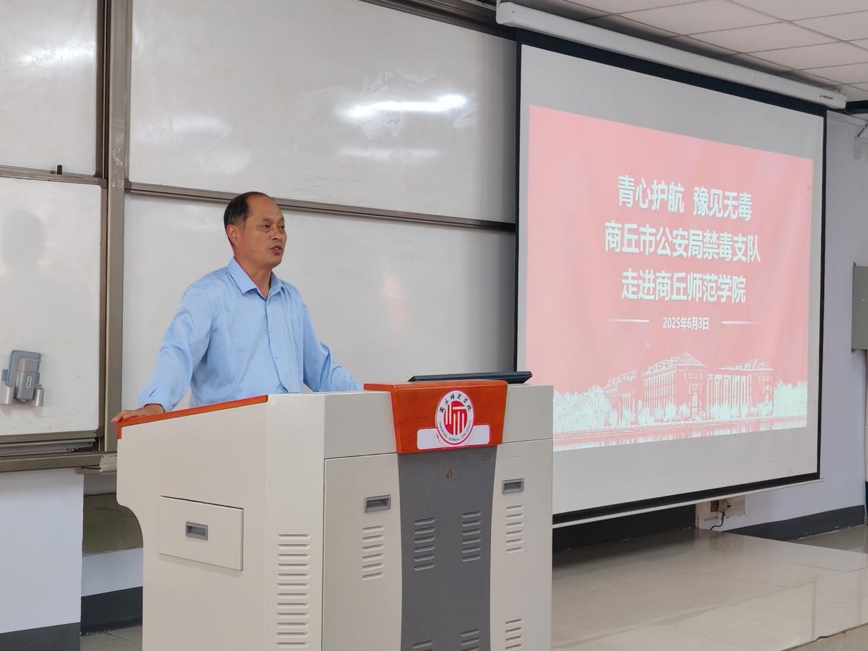 为深入贯彻落实禁毒理念,扎实开展禁毒宣传月活动,在校园内营造浓厚的识毒、防毒、拒毒氛围,6月3日,商丘市公安局禁毒支队走进RM365英国官网开展禁毒宣传教育活动。本次活动由商丘广播电视台记者许煜涵主持,公司党委书记史继红、党委副书记付松山、商丘市公安局禁毒支队副支队长赵雷、RM365英国官网全体辅导员、商丘市公安局禁毒支队和梁园区公安分局禁毒部门同志以及员工代表参加此次活动。