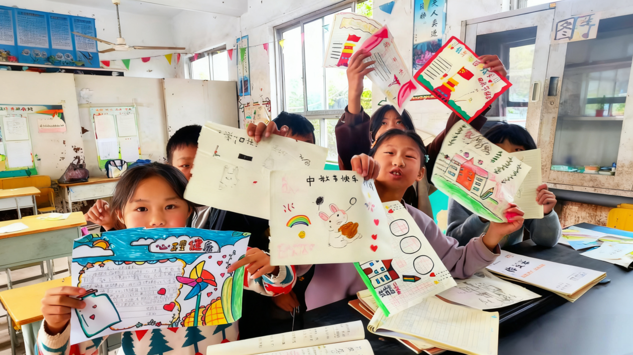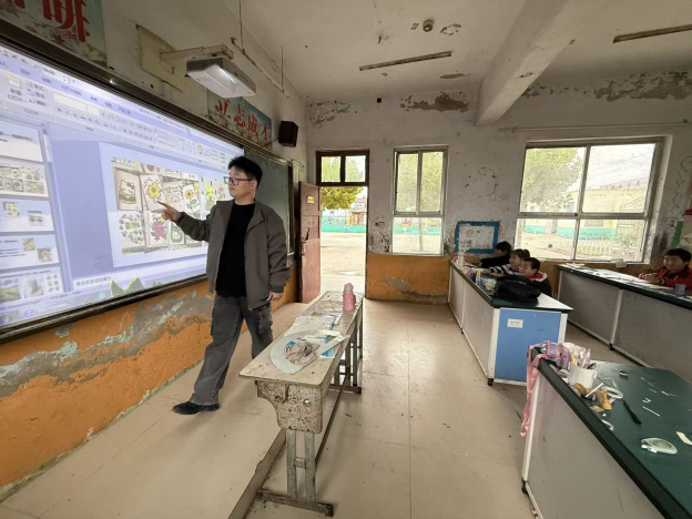 10月中旬,支教团队首先来到厅堂楼小学,以“以画笔为媒,点亮孩子艺术梦”为主题,为孩子们带来了一堂生动有趣的传统文化课。课程结合当地自然与人文特色,设计了“家乡四季”“非遗剪纸”“环保手作”等环节。志愿者们耐心示范绘画技巧,引导孩子们用画笔勾勒乡间溪流、田间作物,并利用废旧纸箱制作“家乡小屋”模型。