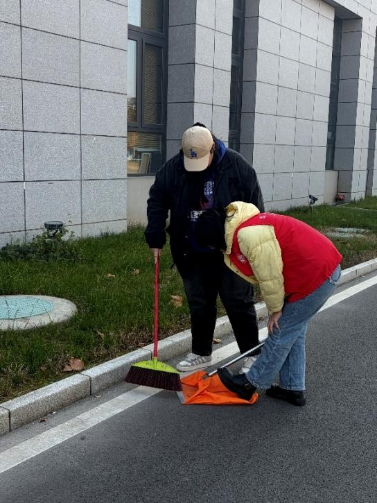 本次清扫范围涵盖艺术中心周边区域及三商楼南侧道路。活动中,同学们积极参与、分工明确,按照责任区域高效开展清理工作。大家精神饱满,认真负责,手持扫帚、垃圾铲等工具,细致清理路面落叶和杂物,不遗漏任何卫生死角,共同营造整洁优美、令人心旷神怡的校园环境。