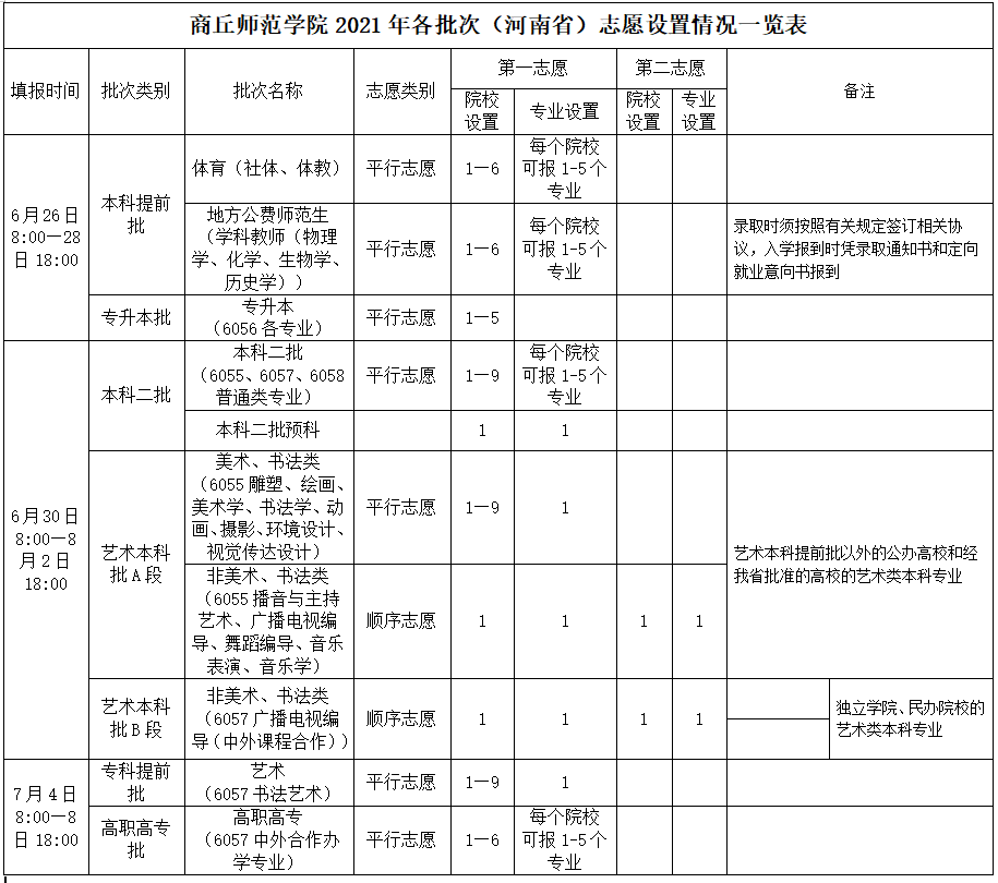 RM365英国官网登录入口2021年各批次(河南省)志愿设置情况一览表