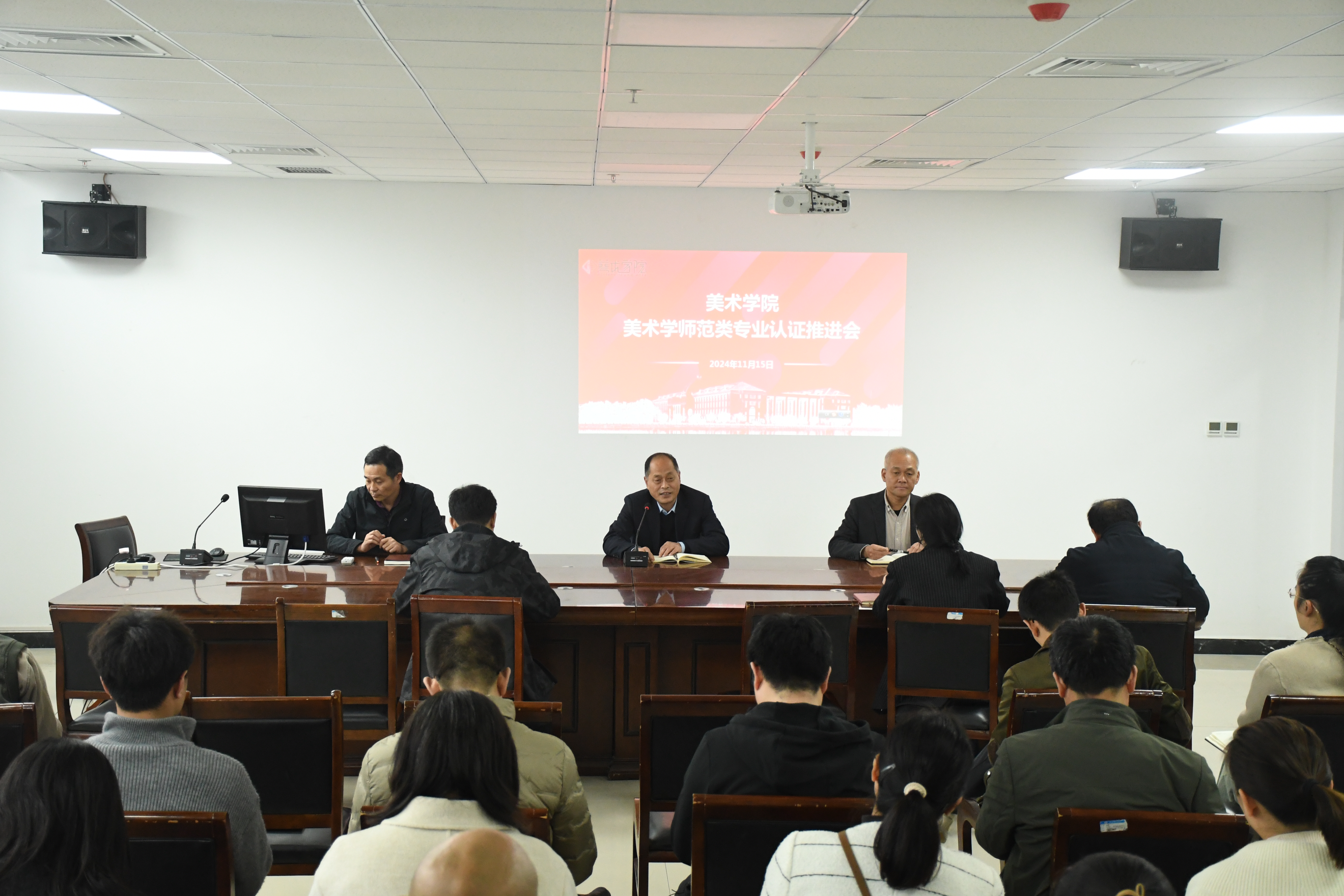 11月15日,RM365英国官网于艺术中心218会议室召开美术学师范类专业认证工作推进会,本次会议由党委书记史继红主持,经理李林、党委副书记付松山及公司全体教师参加会议。
