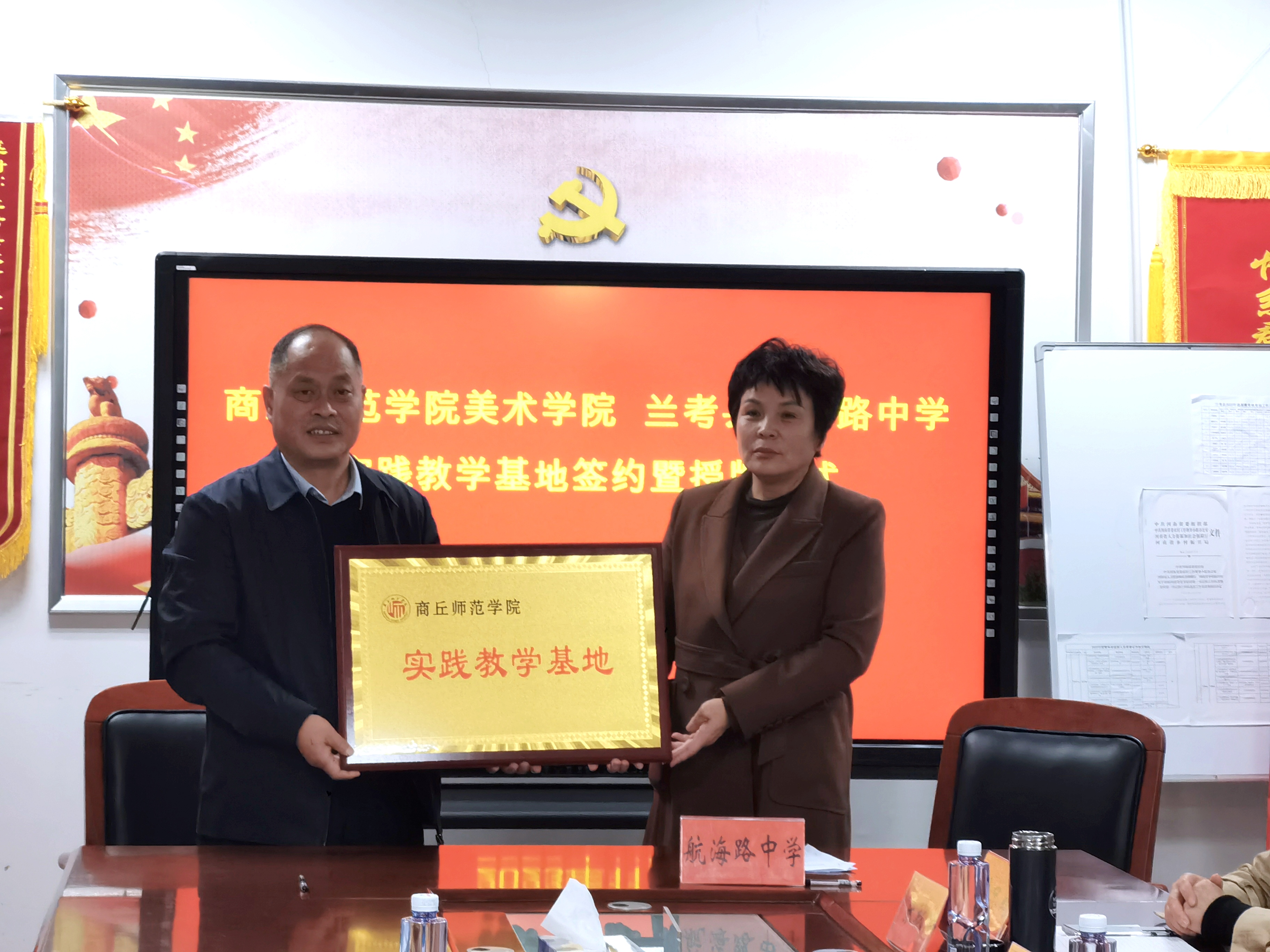 座谈会结束后,公司与兰考县星河中学、航海路中学、玉兰中学三所公司董事长签署了RM365英国官网登录入口实践基地协议并举行了授牌仪式。此次签约标志着双方在人才培养、实践教学等方面开展深入合作,将为公司美术学专业员工提供更多的教学实践锻炼机会,同时也为兰考县教育事业提供更丰富的教学资源。
